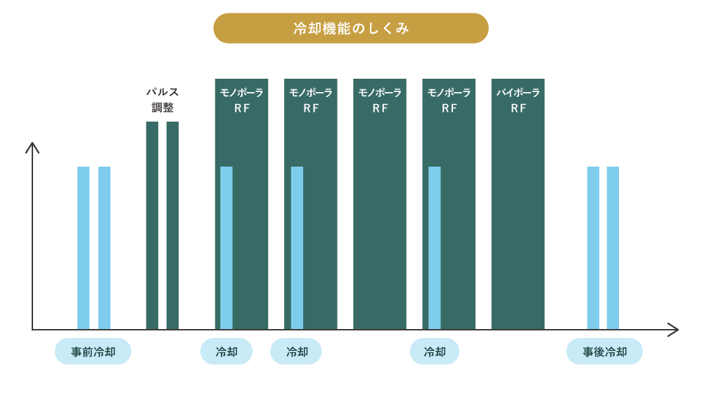 超音波のような「骨に響く痛み」はなく、温かく包まれるような感覚。冷却機能付きなので、敏感肌や痛みに弱い方でも安心して受けられます。