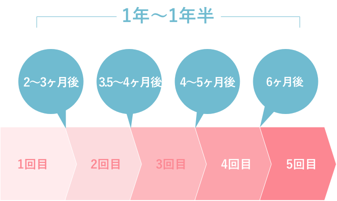 個人差や部位によって異なりますが、脱毛は毛周期に合わせてご来院いただくことをお勧めしております。